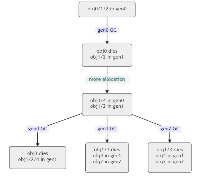 Here’s a simple diagram showing the object life cycle through generations: